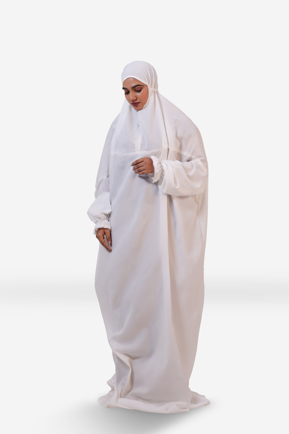 The Ainaura Laya Series is the gold standard for the modern Muslimah seeking a minimalist Islamic prayer dress. Crafted from 100% High-Grade Plain Crepe, this collection is specifically designed for its "liquid drape" and opaque finish. Unlike standard prayer wear, our premium crepe is breathable, wrinkle-resistant, and cooling, making it the perfect daily Salah outfit for home or the masjid.